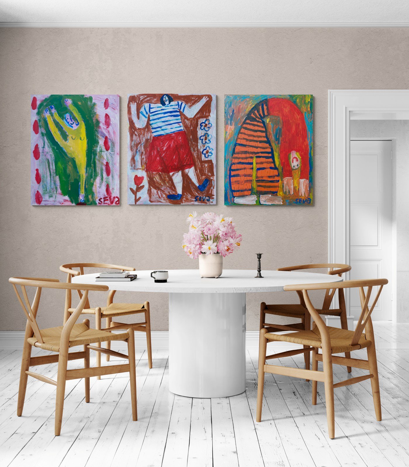 I dance every day and treat myself to a joyful holiday feeling! For me, dancing is like an energy booster that brings joy and fresh momentum into my everyday life. With every movement, I let go of all worries and immerse myself in a world full of lightness. I wanted to capture this freedom and joy of life in my paintings.