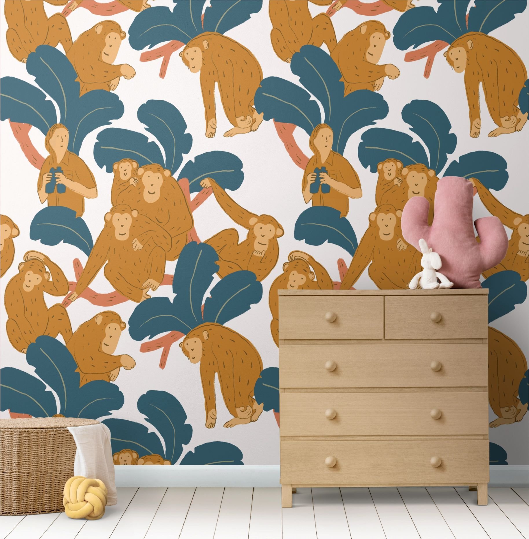 A children's room collection inspired by Jane Goodall—with chimpanzee motifs, jungle, and the researcher herself